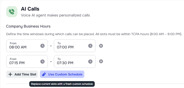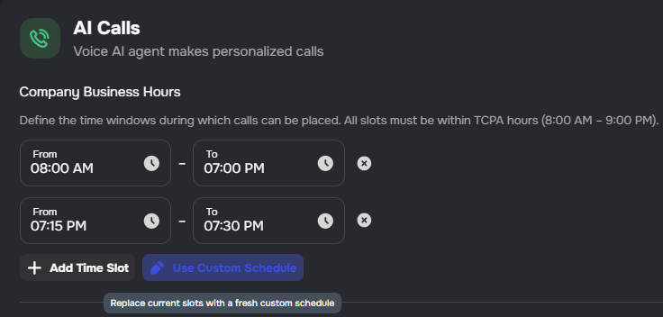Business hour slots display β when using business hours mode, the specific time slots are shown in the campaign details