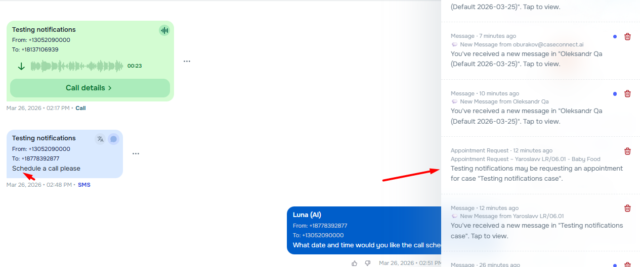 Admins now receive notifications when clients request appointments or upload documents via inbound messages.