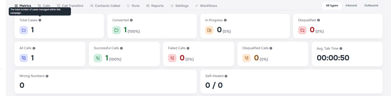 Campaign runs can now be deleted individually from the runs list. Use the three-dot menu on any completed or paused run to remove it along with all associated calls. This helps keep your campaign history clean and focused on relevant data.