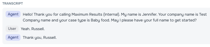 Call history now displays the name of the agent that handled each call, providing better context when reviewing past conversations.