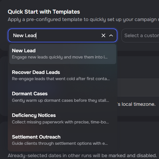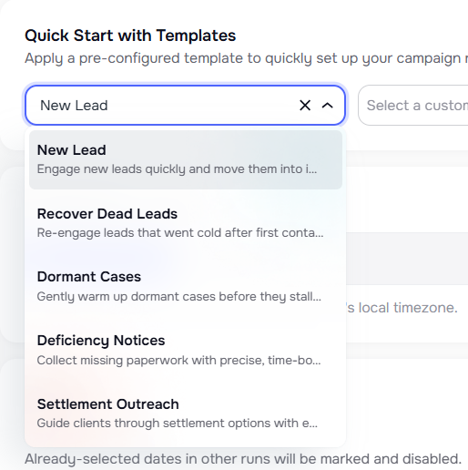 A new "New Lead" campaign template is now available in Quick Start with Templates and the AI campaign generator.